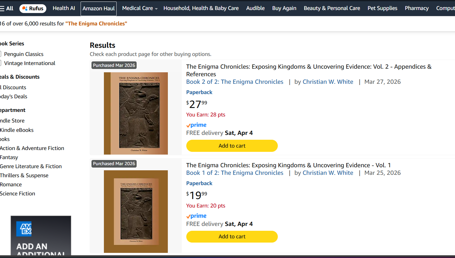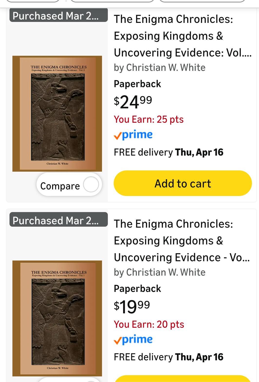 THIS COMPLETE SERIES IN TWO VOLUMES IS AVAILABLE AT AMAZON!!! SIMPLY GO TO THE AMAZON WEBSITE AND TYPE IN "THE ENIGMA CHRONICLES" AND BOTH Volumes 1 & 2 WILL BE VISIBLE FOR PURCHASE! (Just look for the Apkallu on the Cover)